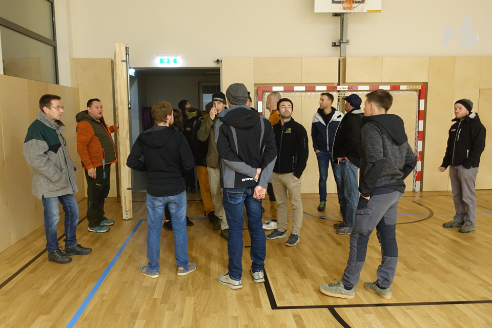 Besichtigt wurden die Zugänge, Klassenzimmer, der Turnsaal, der Dachboden und der Lift. Dabei wurde im speziellen auf Feuerwehrspezifische Themen geachtet.